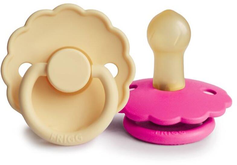 FRIGG Daisy Size 1:0-6 months, 2 db, Cumik gyermekeknek, Próbálja ki ezt az évek során bevált módszert a kisbaba megnyugtatására! A FRIGG Daisy Size 1:0-6 months egyetlen szempillantás alatt nyújt biztonságérzetet az Ön csemetéjének. Ezért hamarosan a kisbabával töltött minden egyes nap fontos és hasznos részévé válik. Tulajdonságok: puha cumirész lehetővé teszi az orron át történő lélegzést, és a nyál lenyelését nem zavarja meg a szívóreflexet nagyon jól légteleníthető Összetétel: kaucsuk Használata: Mindig a gyermek életkorának megfelelő méretű cumit használjon.