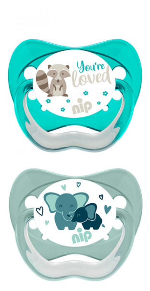 NIP Family szilikon játszócumi 0-6 hónapos korig ajánlott, 2db-os kiszerelés. Ortodontikus formájúak. Anatómiai kialakítású cimipajzzsal és olyan cumi mimtákkal, amelyek mosolyt csalnak a gyermeke arcára, a speciális cumipajzs és a lehajtható gyűrű megakadályozza, hogy a baba arcán nyomás keletkezzen amikor hason fekszik. A különböző cumi méretek alkalmazásával kérjük, vegye figyelembe a gyermeke egyéni fejlődését.