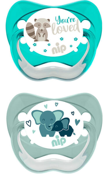 NIP Family szilikon játszócumi 0-6 hónapos korig ajánlott, 2db-os kiszerelés. Ortodontikus formájúak. Anatómiai kialakítású cimipajzzsal és olyan cumi mimtákkal, amelyek mosolyt csalnak a gyermeke arcára, a speciális cumipajzs és a lehajtható gyűrű megakadályozza, hogy a baba arcán nyomás keletkezzen amikor hason fekszik. A különböző cumi méretek alkalmazásával kérjük, vegye figyelembe a gyermeke egyéni fejlődését.