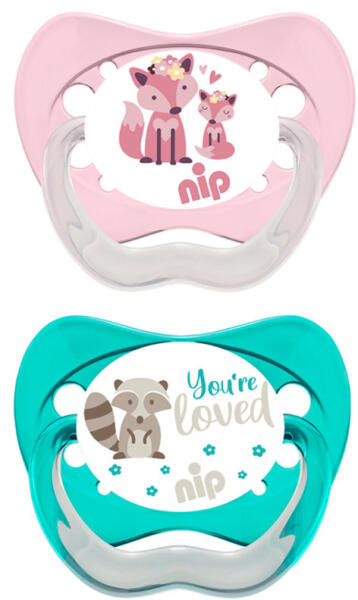 NIP Family szilikon játszócumi 0-6 hónapos korig ajánlott, 2db-os kiszerelés. Ortodontikus formájúak. Anatómiai kialakítású cimipajzzsal és olyan cumi mimtákkal, amelyek mosolyt csalnak a gyermeke arcára, a speciális cumipajzs és a lehajtható gyűrű megakadályozza, hogy a baba arcán nyomás keletkezzen amikor hason fekszik. A különböző cumi méretek alkalmazásával kérjük, vegye figyelembe a gyermeke egyéni fejlődését.