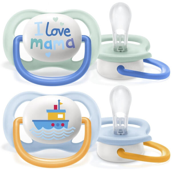Philips SCF080/01 Ultra air játszócumi Text 0-6 hó fiús 2 db (949183)