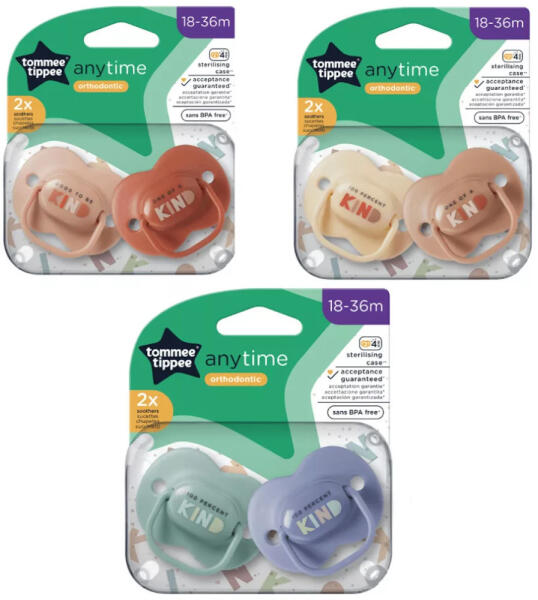 A Tommee Tippee játszó- és nyugatócumik a legszigorúbb irányelveknek és biztonsági szabványoknak megfelelve, többféle méretben, folyamatosan megújuló mintákkal és színekkel készülnek. Szimmetrikus, ortodontikus kialakításúak, elõsegítik a megfelelõ fogazat és szájüreg fejlõdését, a lágy szilikon cumi pedig tökéletesen illeszkedik a kis szájacskákba. Az Anytime cumit hagyományos pajzs forma, modern, ugyanakkor kicsit visszafogottabb minta és szín jellemzi, tökéletes választás az újszülöttek számára és mindennapi használatra. Termék jellemzõk: Szimmetrikus, ortodontikus forma Hagyományos pajzs, modern, visszafogott színek és minták A cumifej megfordítható, így a baba könnyebben vissza tudja tenni magának Háromféle méretben: 0-6, 6-18, 18-36 hó 2 db található a csomagban BPA-mentes - Fontos! A termék egészségvédelmi és higiéniai terméknek minõsül. Amennyiben a csomagolás felbontásra került, vagy a kipróbálás jelei látszódnak a terméken, úgy a 14 napos elállási jog érvényét veszíti a 45/2014. (II. 26. ) korm. rendelet 29. § (1) bekezdése alapján.