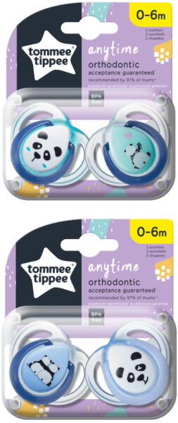 A Tommee Tippee játszó- és nyugatócumik a legszigorúbb irányelveknek és biztonsági szabványoknak megfelelve, többféle méretben, folyamatosan megújuló mintákkal és színekkel készülnek. Szimmetrikus, ortodontikus kialakításúak, elősegítik a megfelelő fogazat és szájüreg fejlődését, a lágy szilikon cumi pedig tökéletesen illeszkedik a kis szájacskákba. Az Anytime cumit hagyományos pajzs forma, modern, ugyanakkor kicsit visszafogottabb minta és szín jellemzi, tökéletes választás az újszülöttek számára és mindennapi használatra. Termék jellemzők: